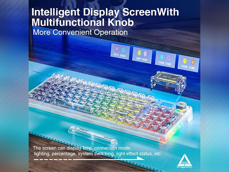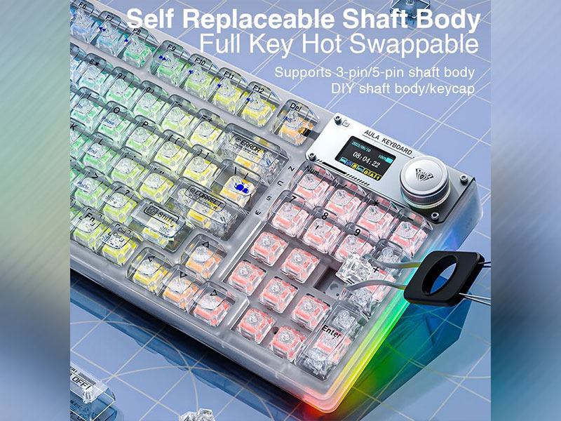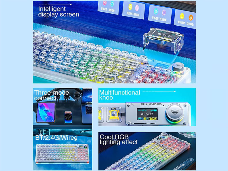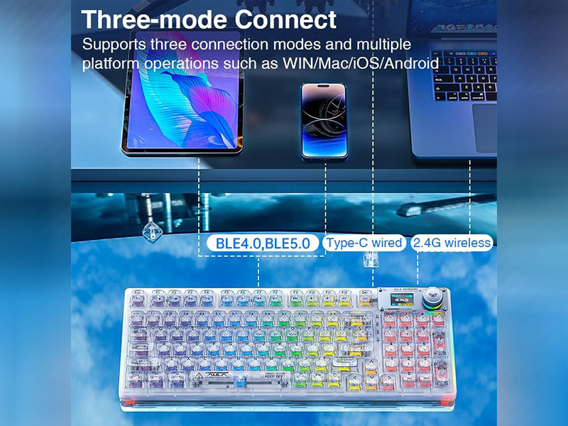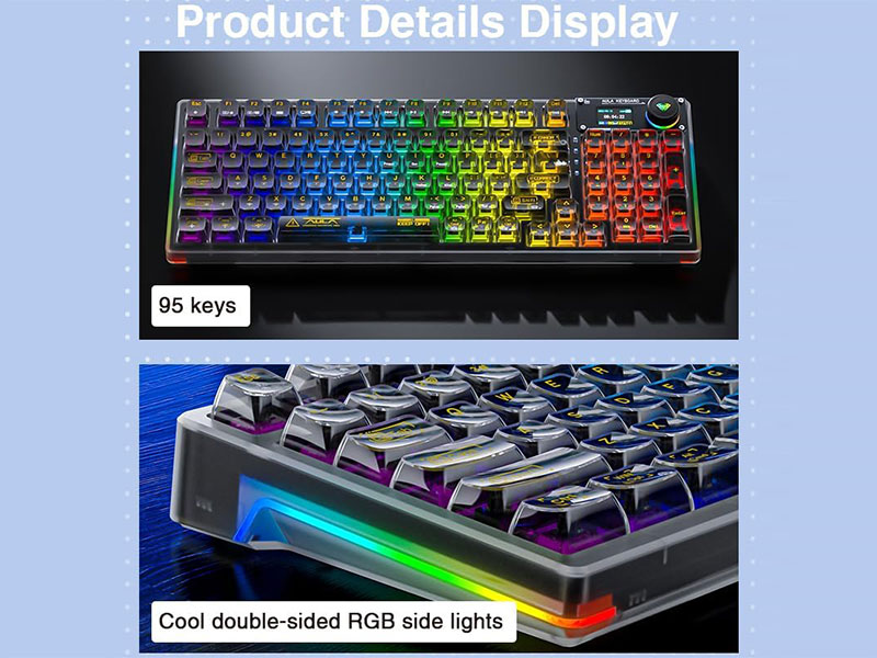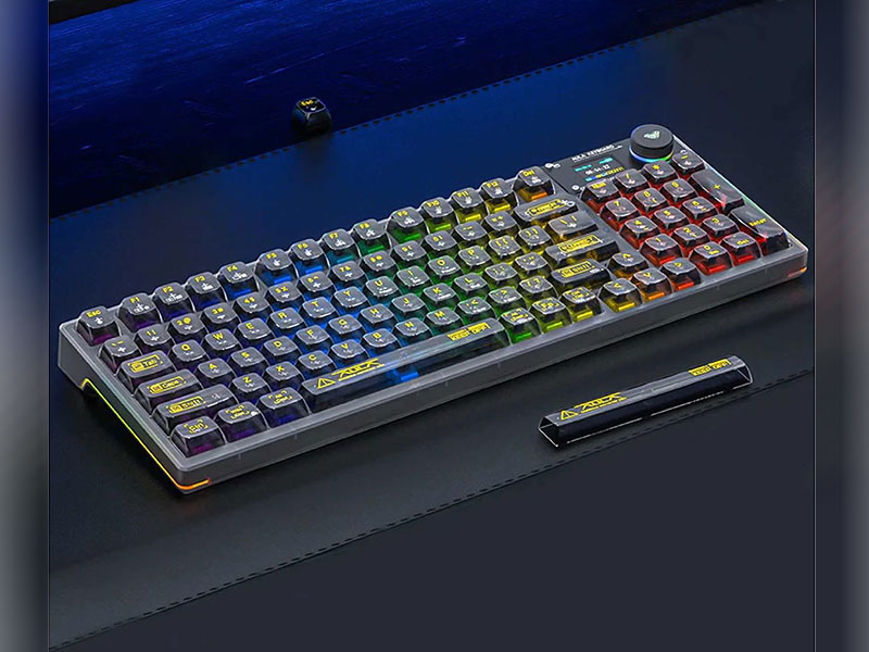 کیبورد گیمینگ آئولا مدل F98 PRO یک محصول سه حالته می باشد که به صورت سیمی، بیسیم توسط دانگل USB و بلوتوث می تواند به سیستم شما متصل شود. این نحوه اتصال آزادی عمل بیشتری برای کاربر برای انتخاب در نحوه اتصال می دهد. طراحی کلید های این کیبورد به صورت شیشه ای بوده که زیبایی منحصر به فردی دارند و دارای حروف فارسی حک شده می باشند و همچنین مجهز به نورپردازی خیره کننده با 20 افکت نورپردازی RGB پیش فرض می باشد که می توانید نحوه نورپردازی را توسط نرم افزار به دلخواه خود شخصی سازی کنید تا هر آنگونه که می خواهید بدرخشد. در قسمت های کناری نیز نورپردازی RGB به صورت لاین در این کیبورد وجود دارد. همچنین این کیبورد امکان شخصی سازی عملکرد کلیدها را نیز دارد. این محصول آئولا مجهز به فناوری Anti-Ghosting و N-Key Rollover که امکان فشردن همزمان چندین کلید به صورت هم زمان را دارد و مجهز به سوئیچ های مکانیکی از نوع روح یخی (سوئیچ های کریستالی) که یکی از حرفه ترین و بهترین نوع سوییچ در دنیا با عملکرد سریع و دقیق و برای کسانی است که عملکرد فوق سریع در بازی ها برایشان اهمیت دارد. این کیبورد مجهز به باتری داخلی قابل شارژ با ظرفیت 4000 میلی آمپر ساعت با عمر طولانی، مناسب برای استفاده های طولانی مدت می باشد. دارای طراحی ارگونومیک با پایههای قابل تنظیم به منظور عدم خستگی کاربران، بسیار مناسب برای جلسات طولانی، بازی یا تایپ و طراحی مقاوم در برابر نفوذ مایعات برای افزایش دوام و مقاومت در شرایط مختلف، سازگاری با سیستمعاملهای ویندوز، مک و لینوکس، مجهز به صفحه نمایشگر جهت اطلاع از وضعیت و عملکرد محصول از ویژگی های بارز این کیبورد می باشد.