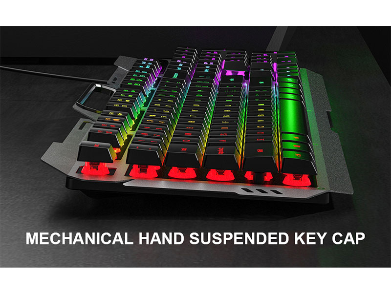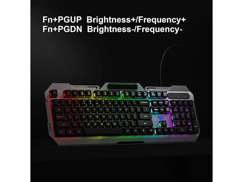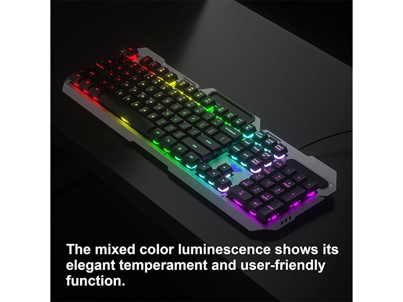 کیبورد این محصول مجهز به کلیدهای مالتی مدیا می باشد که با استفاده از دکمه ترکیبی FN می توانید تنظیمات دلخواه خود را انجام دهید. همچنین ماوس نیز دارای 6 عدد کلید با نور پس زمینه RGB بوده که حسگر آن قابل تنظیم در 800-1200-1600-2400 نقطه بر اینچ می باشد.