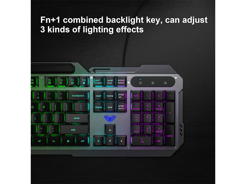 کیبورد و ماوس باسیم آئولا F2023 COMBO محصولی بسیار باکیفیت و با طراحی جذاب از برند AULA می باشد که کیبورد آن از آلیاژ آلومینیوم ساخته شده و مقاومت خوبی در برابر صدمات احتمالی دارد. این محصول مجهز به نورپردازی RGB بوده که می توانید آن را به دلخواه خود تنظیم کنید و جلوه های بصری زیبایی را به آن می بخشد. قطر کلیدها 2 میلیمتر بوده که سرعت و واکنش سریع آن در بازی ها عملکرد بسیار خوبی دارد و برای تایپ و کارهای روزمره نیز بسیار مناسب می باشد.
